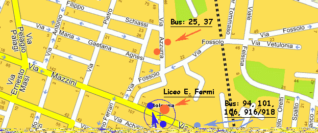 Vi troverete così in Via Indipendenza, e avrete davanti a voi, sulla destra, una fermata del bus: da qui prendere una qualsiasi linea 27, e scendere alla fermata “Fermi“.