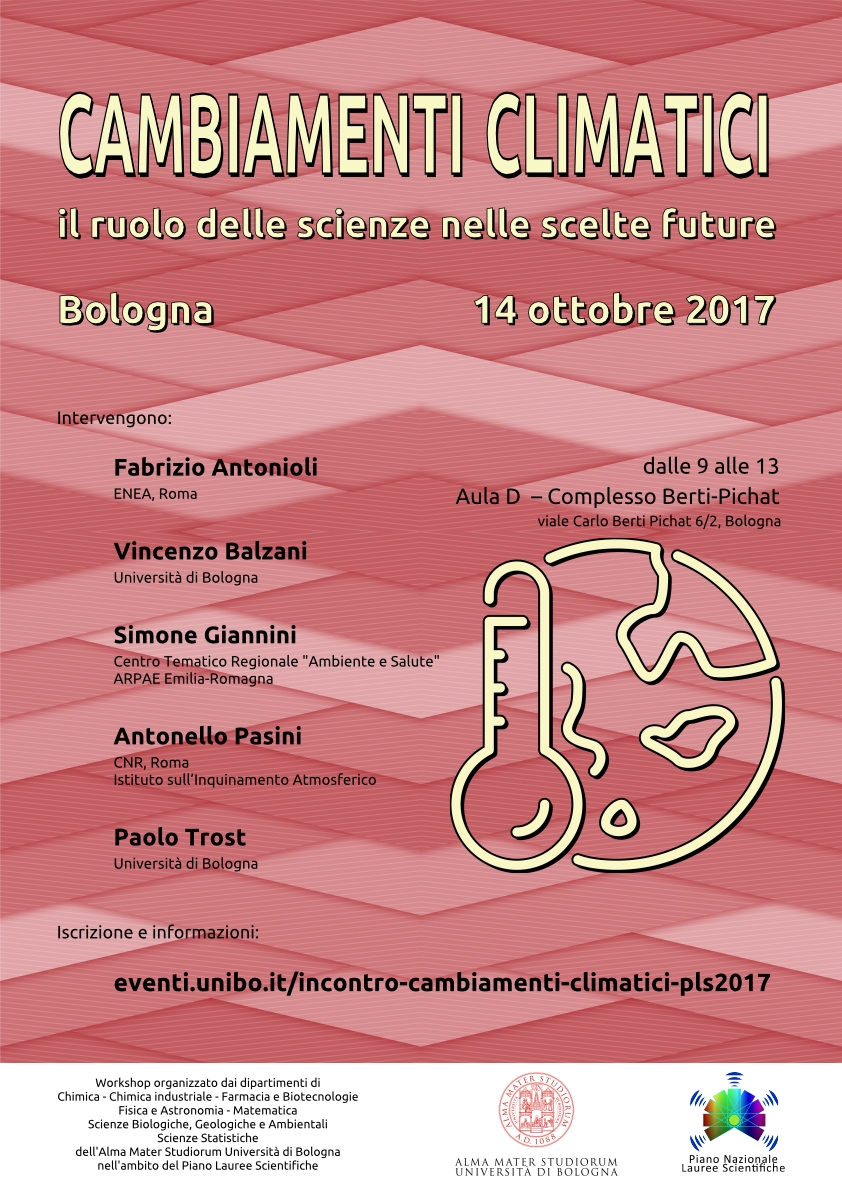 Convegno su “Cambiamenti climatici: il ruolo delle scienze nelle scelte future”, sabato 14/10 ore 9-13 Aula D,l viale Carlo Berti Pichat 6/2.