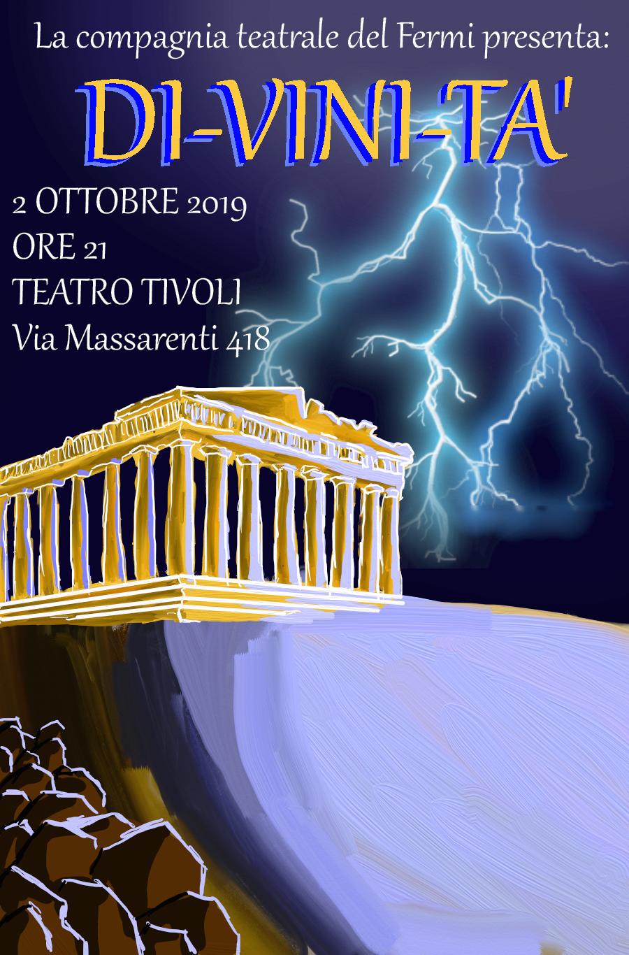 La Compagnia teatrale del Fermi presenta la replica dello spettacolo DI-VINI-TA’: 2 ottobre 2019 ore 21 presso il Teatro TIVOLI (Bologna) in via Massarenti 418.